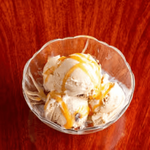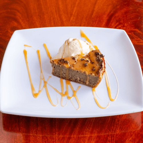 Served with caramel sauce